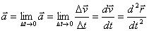 或者:质点的瞬时加速度等于位置矢量对时间的二阶导数。