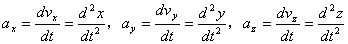 3、瞬时加速度在直角坐标系中的正交分解式:(推导过程省略)