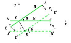 ,建立如图的坐标系,原点O在两杆初时刻的交点处,